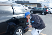 O exterior de cada veículo é verificado, arranhões e outros danos.